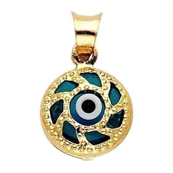 Evoke protection and style with our Circle Evil Eye 14K Solid Gold Pendant. This delicate pendant, weighing approximately 0.65 grams, is a symbol of safeguarding against negative energy.