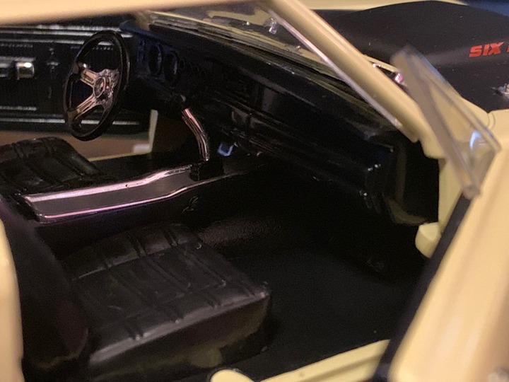 "READ" 1969 DODGE SUPER BEE 440 SIX-PACK ... "CUSTOM" 1 OF 1 ... CUSTOM RADIO ANTENA ... CUSTOM MAGNUM RIMS/GOOD YEAR RWL TIRES ... CUSTOM BUCKET SEAT CONSOLE 4-SPEED INTERIOR ... (YELLOW/BLACK EXTERIOR-BLACK INTERIOR) ... ("ERTL AMERICAN MUSCLE" ) ITEM NUMBER CUSTOM SPECIAL!!!!!!!!!! THIS CAR HAS HAD THE ORIGINAL WHEELS BLACK STEEL RIMS REMOVED AND CUSTOMIZED WITH NEW MAGNUM 500 RIMS AND RWL GOOD YEAR TIRES ... IT HAS ALSO HAD THE BENCH SEAT REMOVED AND REPLACED WITH BUCKET SEATS AND A FLOOR CONSOLE ... IT HAS HAD A RADIO ANTENA PROFESSIONAL INSTALED ... PLEASE LOOK AT ALL PICS CLOSE TO SEE THE DETAILS THAT HAVE GONE INTO THIS BEAUTY!!!!