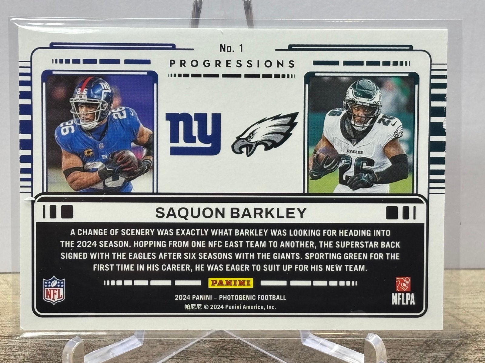 2024 Panini Photogenic no. 1 Saquon Barkley Progressions orange glitter numbered 05/25. Ships in a bubble mailer with tracking.