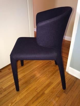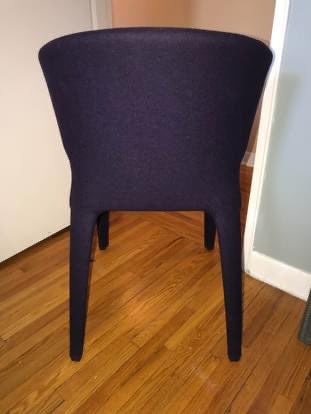 These were used in our low to no traffic reception area pre pandemic. Selling because we don’t have an office anymore. These chairs were $750 each and we’d love to have them taken off our backs for a better deal than that. Purple felt like material with zippers for cleaning or changing colors.