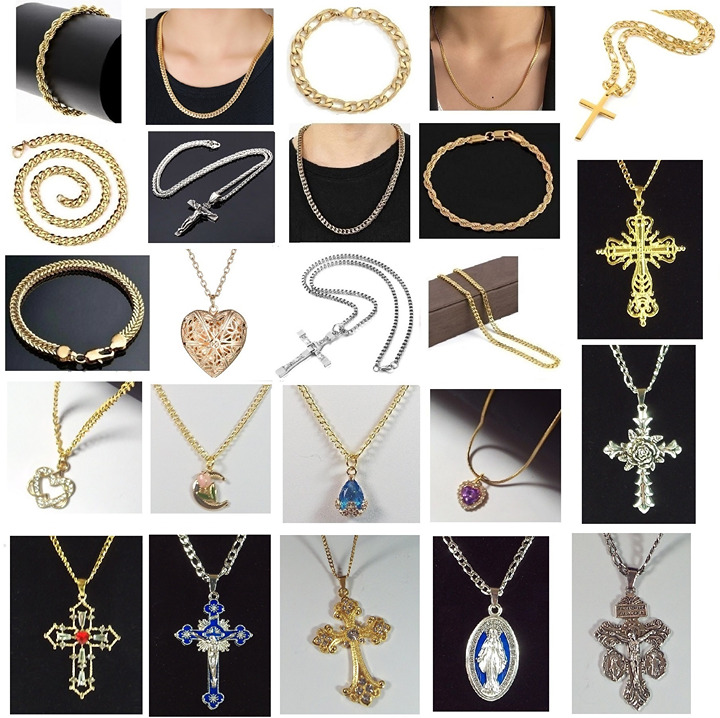 This incredible luxury jewelry closeout wholesale bundle lot contains 60 PIECES BRAND NEW stainless steel gold and silver plated highly-polish fine crafted jewelry pieces. These are not returns or salvage ALL merchandise is BRAND NEW INDIVIDUALLY BAG & CARDED. The lot consist of over 30 styles a Grand Total 60-PIECES BRAND NEW jewelry pieces which includes a great assortment finely crafted 18''/20''/22''/24''/26''/30'' cuban chains, figaro chains, rope chains, snake chains, 7.5''/8''/8.5''/rope bracelets, figaro bracelets, herringbone bracelets, 18''/20''/24'' two-piece pendant necklace sets count as one. . Means you will receive 1 to 3 of the same style necklaces and bracelets jewelry pieces. These jewelry pieces sell retail between 15 and 20 dollars. Every piece is securely packaged in clear poly bag. The TOTAL LOT includes 60 piece fine fashion jewelry pieces, Also Includes FREE BONUS GIFT 12 x decorative golden gift pouches (as shown in pictures). Message me with any questions.
