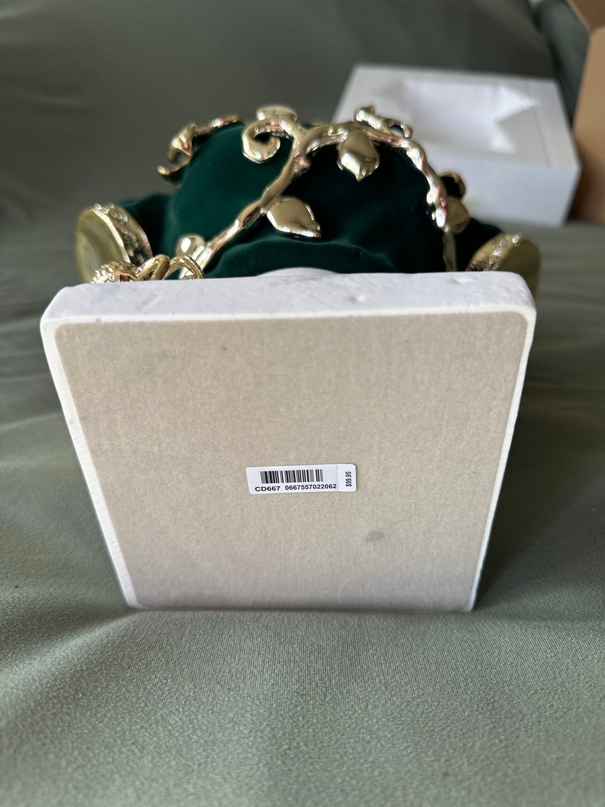 Brand new in box never used green and gold marble headless bust candle holder with golden detail. Original price tag of 99.95 on bottom, been in box in storage and doesn’t fit my current decor. Halloween declaration that would fit year round.
