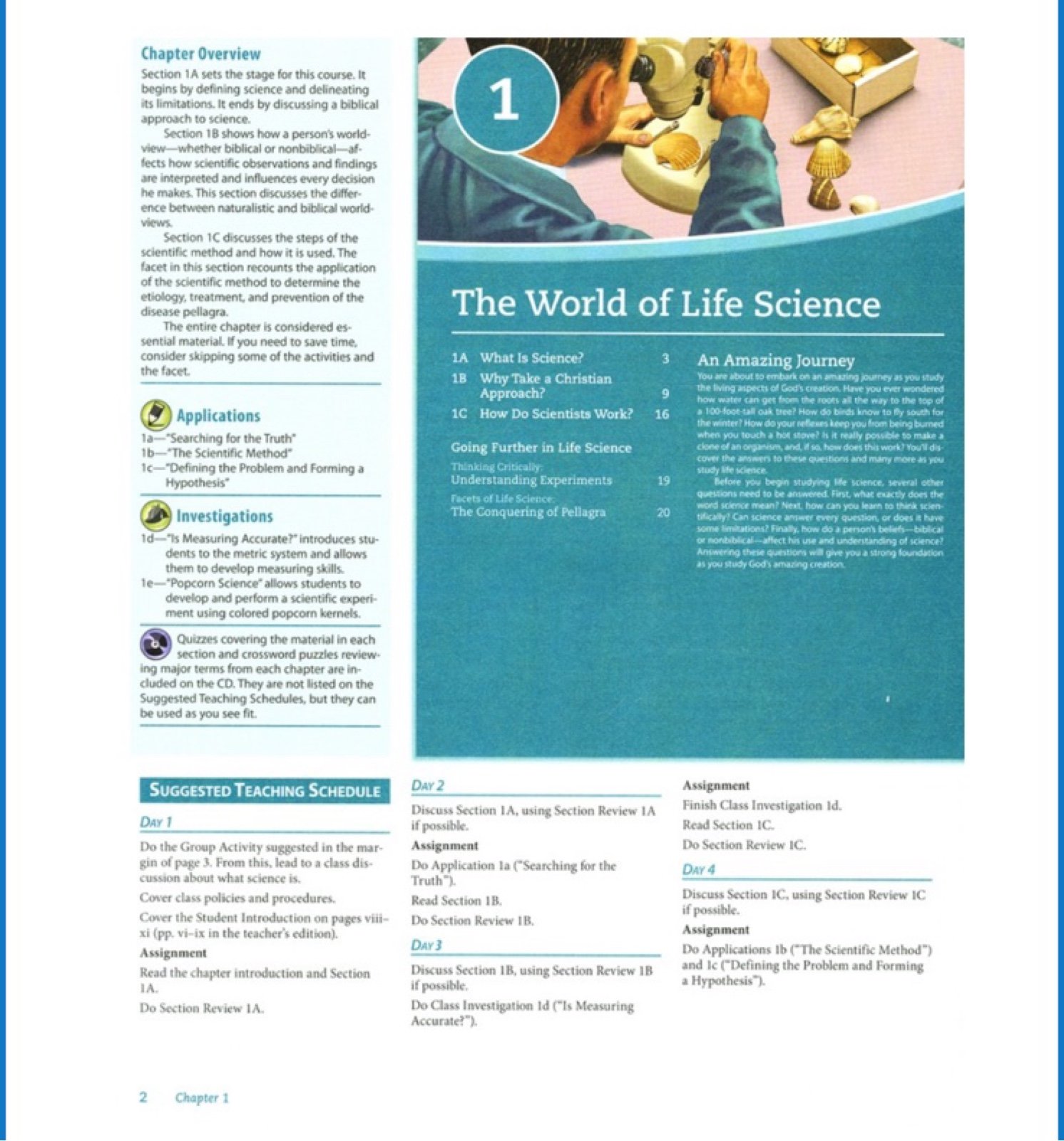 This teacher's edition accompanies BJU Press' sold-separately BJU Life Science Grade 7 Student Text, 4th Edition. Reduced-size reproductions of the student pages are surrounded by lesson notes that include answers, background information, objectives, notes on visuals, suggested teaching schedules, vocabulary notes, and other helpful information. Unit introductions gives teachers an overview, chapter goals, a lesson plan chart with page numbers, suggested materials, and bulletin board ideas.