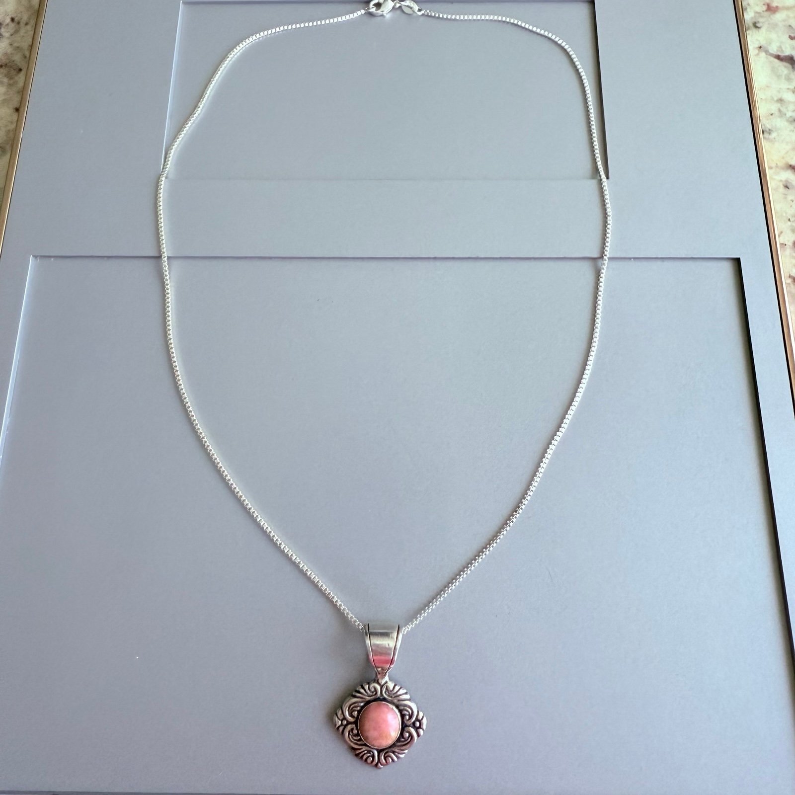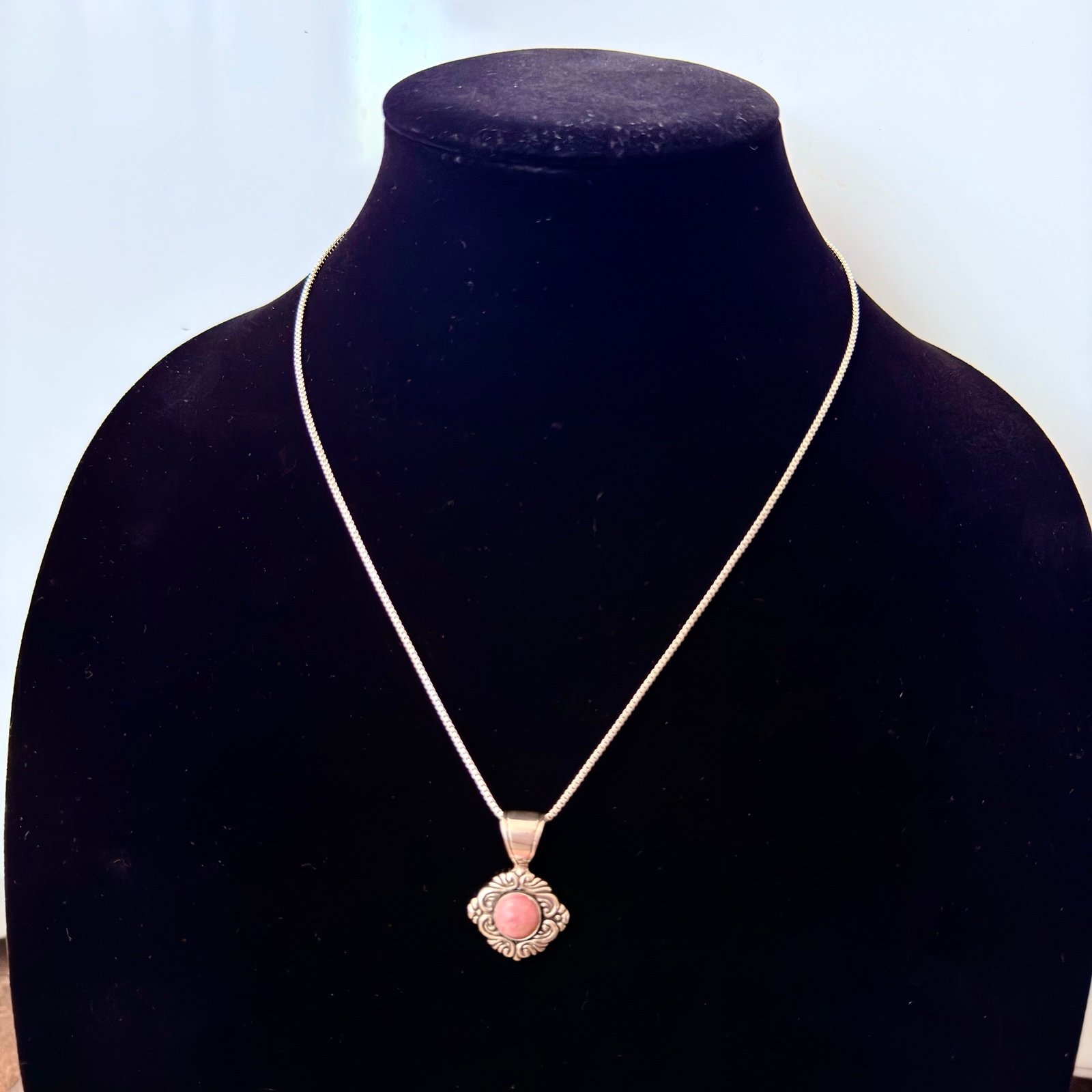 Carolyn Pollack Rhodonite Filigree Sterling Silver Pendant Chain Necklace VINTGE