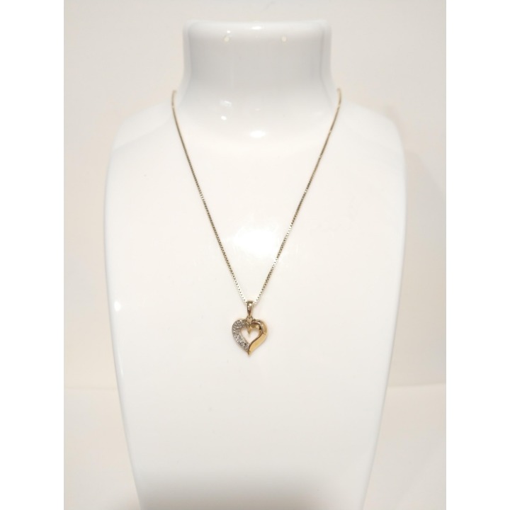 Heart Pendant Necklace Womens 14k Yellow Gold Sterling Silver 925 Diamond Italy Gift