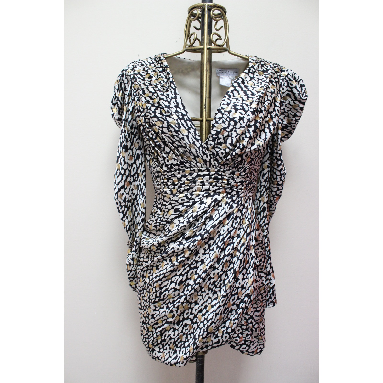 Ieena by MacDuggal Animal Print Leopard Gathered Puff Sleeve Cocktail Dress 4