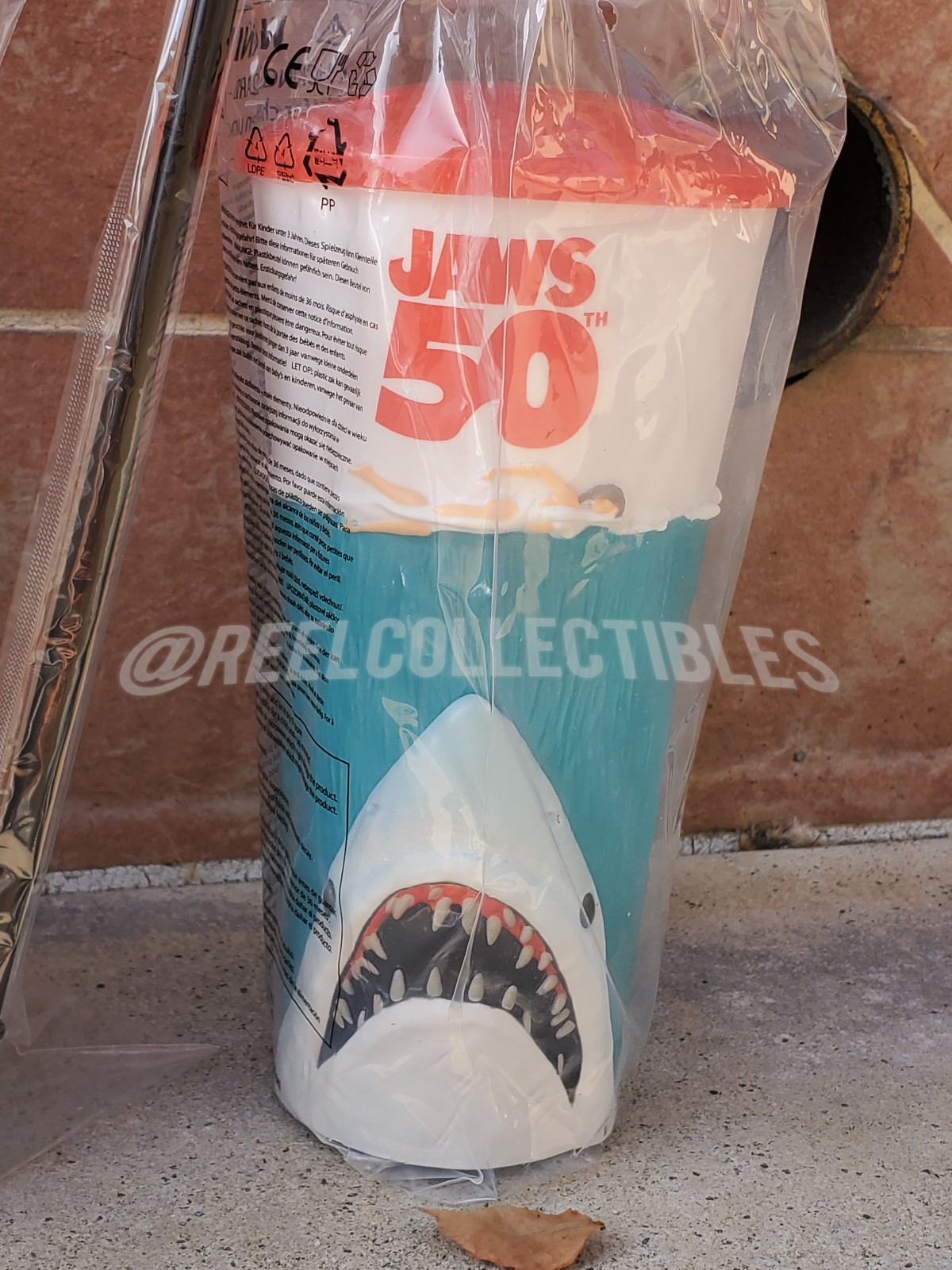 ONE (1) Jaws 50th Anniversary GRIPPR Tumbler Drink Cup with Lid & Straw, depicting the infamous movie poster swimmer scene!