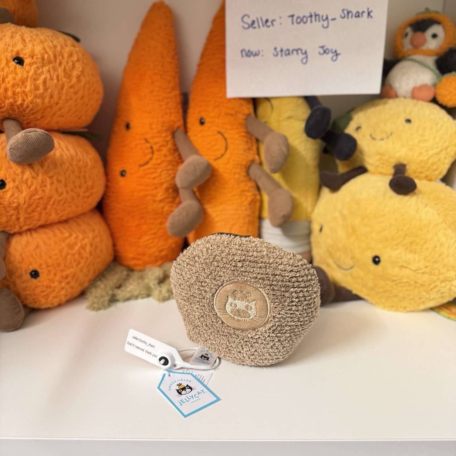 Due to the high demand of Jellycats, each plush will be attached with a plastic anti-tamper clasp. This is in place to ensure authenticity of the products I am selling.