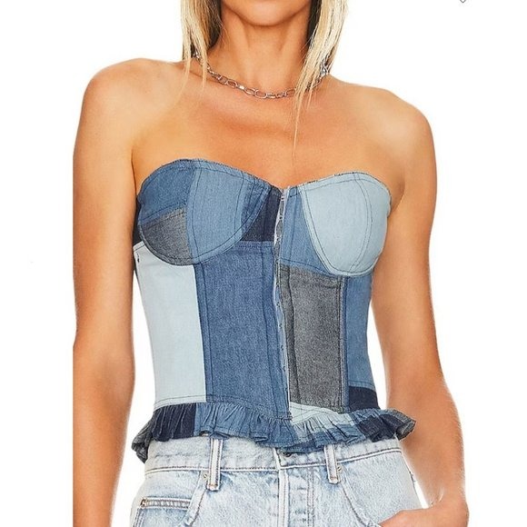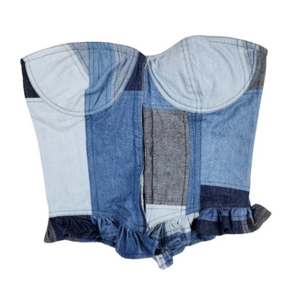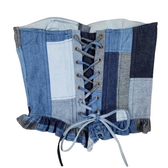 Love the Label Denim Patchwork Valeria Corset Top sz M Blue Y2K Casual