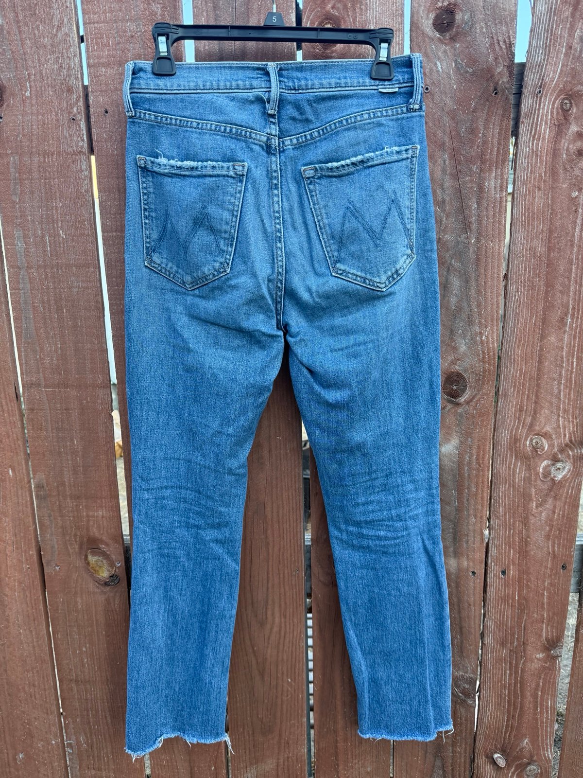 Timeless blue jeans by Mother! These are the Pixxie Dazzler Ankle Fray in color Love Pop. A classic medium wash denim jean, with some distressing and visible logos. Perfect for a casual outfit or dressing up with your favorite sweater and boots! No major signs of wear, please review photos before purchase. Comfortable, has some minor stretch and made in the USA. Preppy, designer style. Women's size 27.