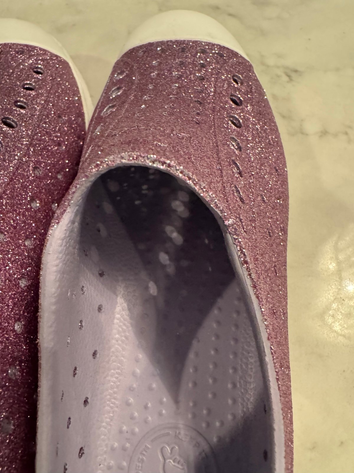 NWOT Native shoes bling glitter slip-on shoes with white soles.