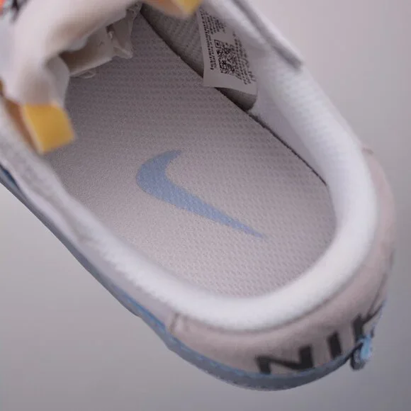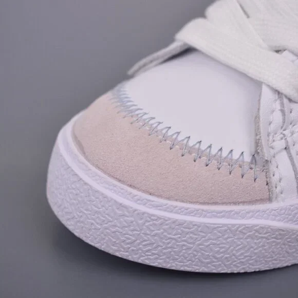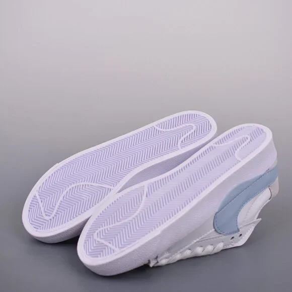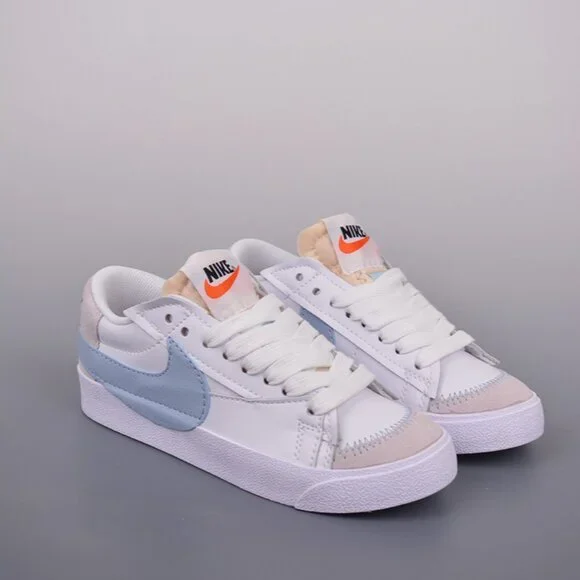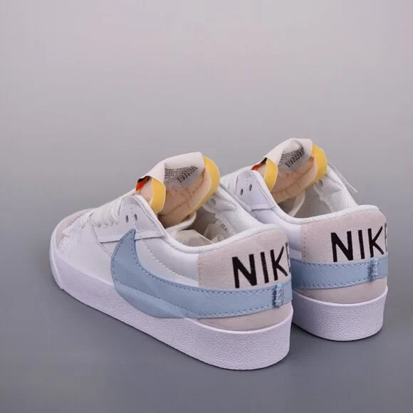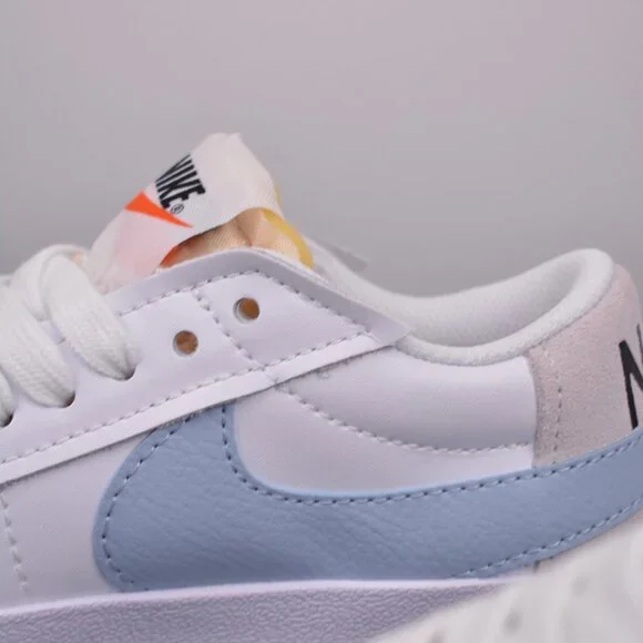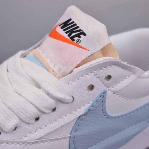Nike Blazer Low 77 Jumbo Sneaker Blue WhiteEU 45 or Men's 11Exposed foam tongueJumbo lacesThick thread stitchingJumbo laces are much easier to tie and add a bold look to any outfit.Capturing the essence of the classic Blazer, the stitched leather overlays and soft suede accent on the toe add heritage hoops style.Extra-thick thread for the stitching adds a bold, defiant touch.Raised herringbone pattern on the rubber outsole exaggerates the classic look while providing traction.