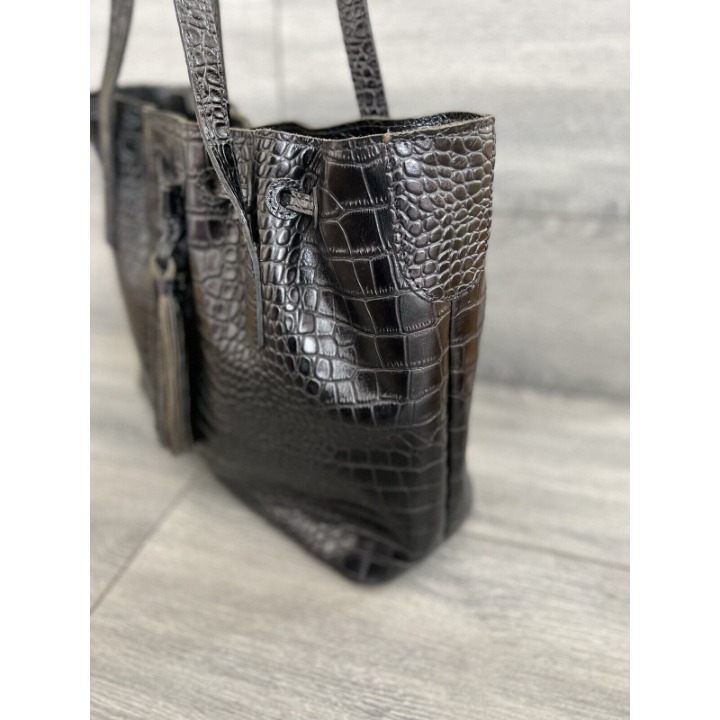 Patricia Nash Leather Drawstring Witney Tote shoulder black crocodile.
