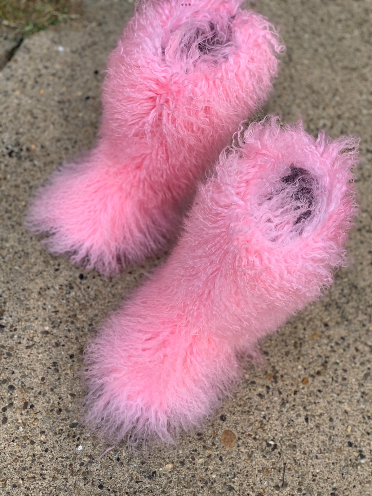 Elevate your winter style with these pink genuine fur shaggy show-stopping, fur boots, expertly blending luxury comfort, durability, and a fashion flair. Our boots offers a plush, furry exterior and warm faux fur lining. They ensures your feet stay cozy and dry, no matter the snow-filled occasion. Our hard bottom soles are durable and provides excellent traction and stability on icy and snowy surfaces Size 8.5 ships in 1-3 business days. Brand new they are no brand. The 8.5 is Euro cut