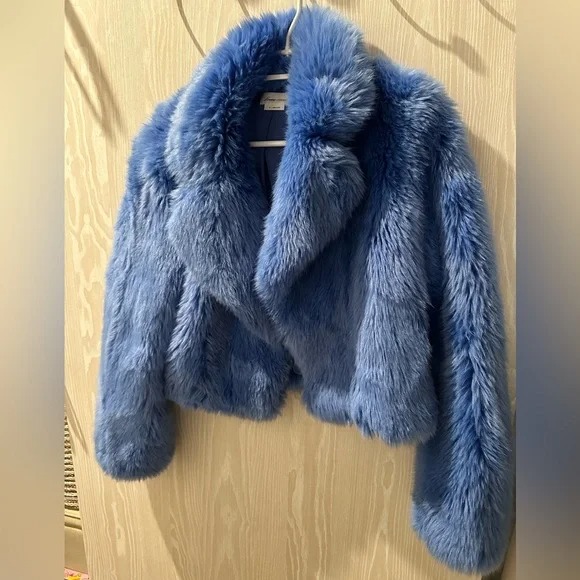 The Lovers + Friends robin blue Reed Cropped Jackets displays how to wear color in the brutal winter. Cut in a boxy silhouette, the plush faux style looks and feels just like the real thing.