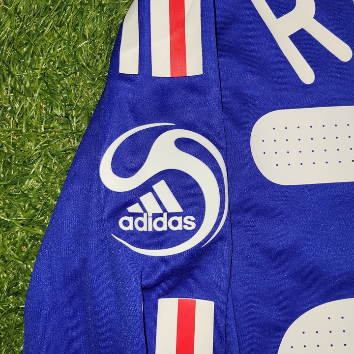 -It has the Adidas logo, France logo, Adidas stripes all in plastic instead of embroidered