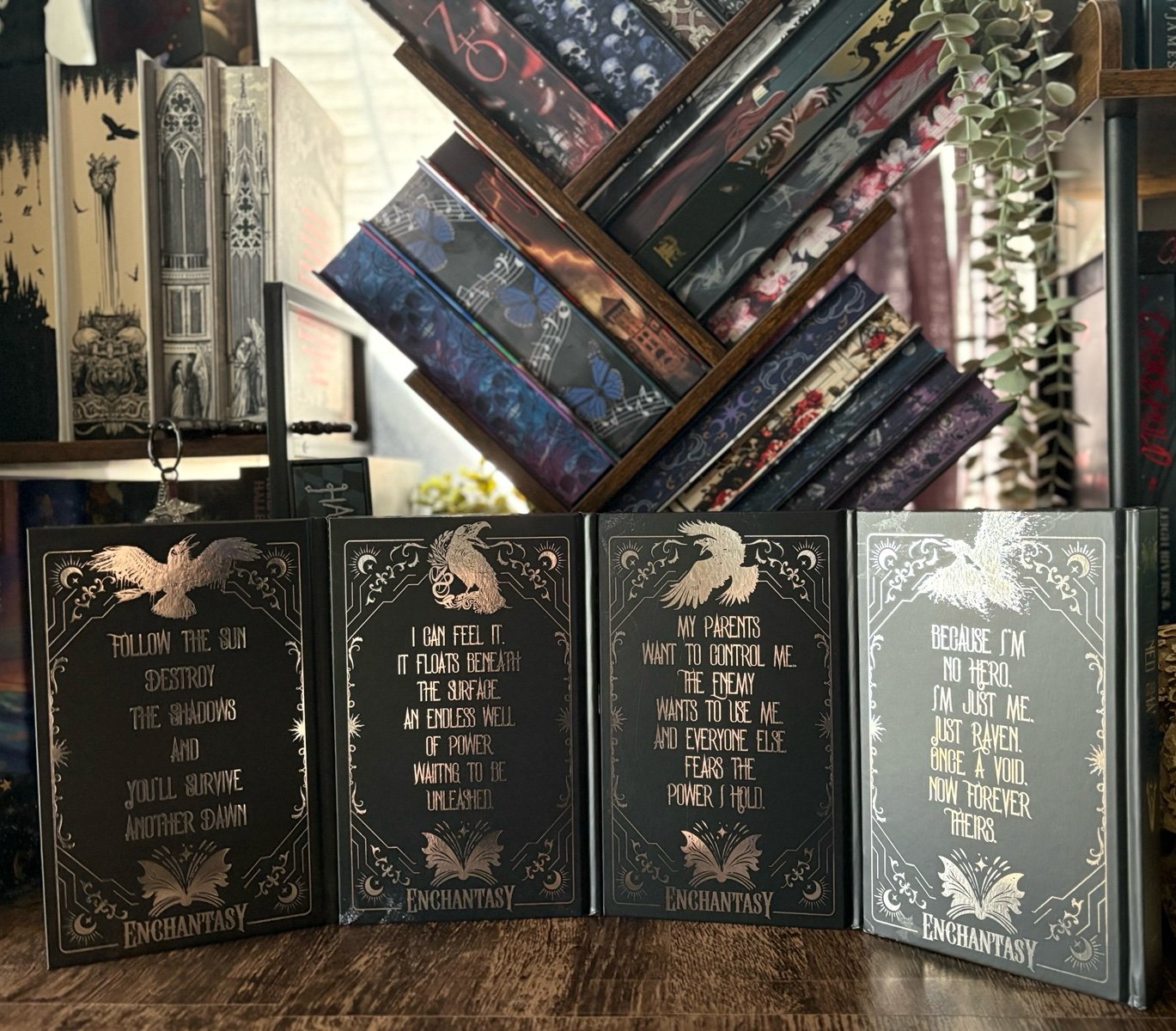 These books feature matte hardbacks w/ metallic foiling, end page & chapter artwork, & detailed stenciled edges.