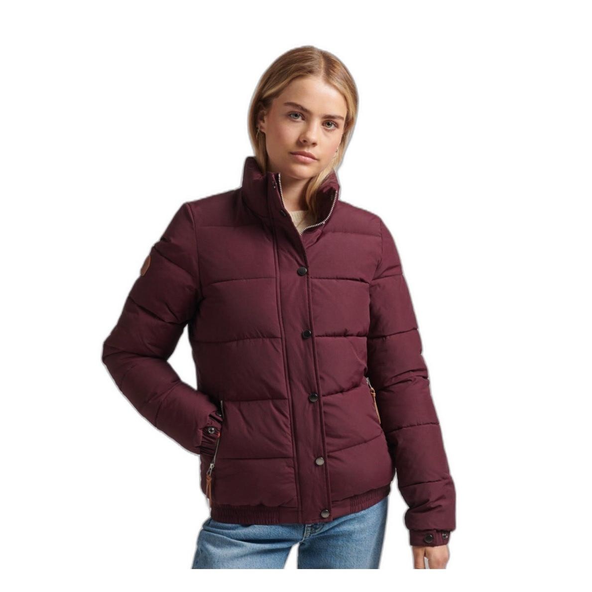 Superdry Jacket Womens 8 Burgundy Puffer Mountain Outdoor Cozy Orange Lining