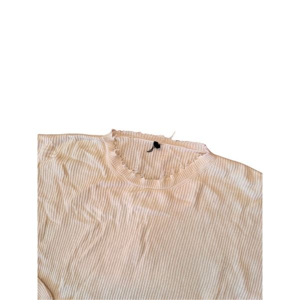 Cream cashmere blend frayed cashmere jumper from Unravel featuring a crew neck, long sleeves, a ribbed hem and cuffs, raw edges and drop shoulders.