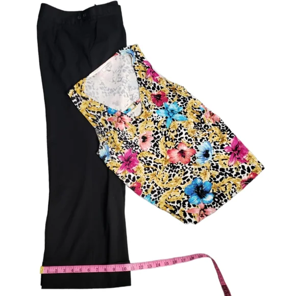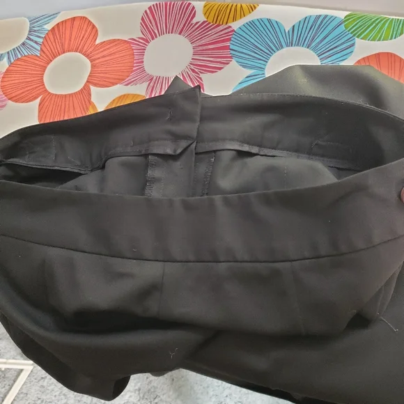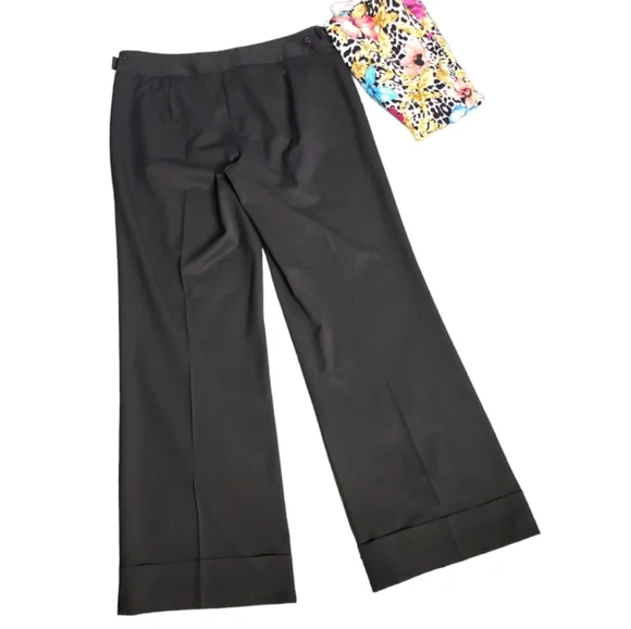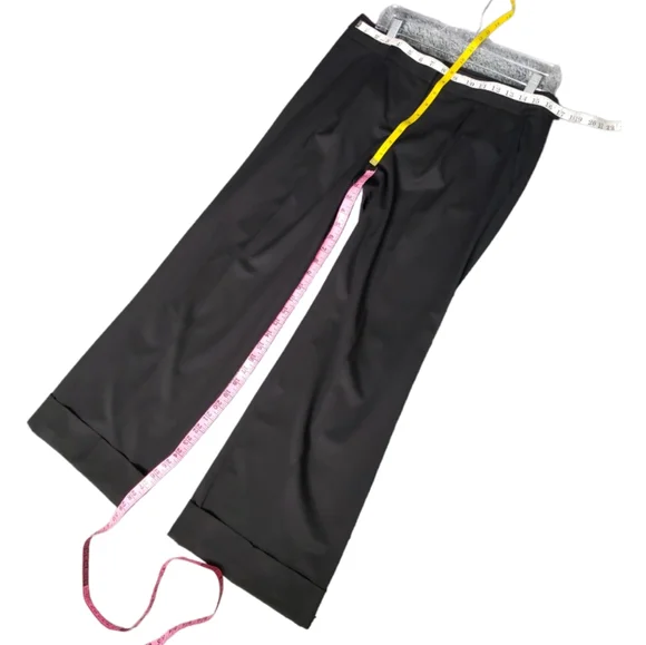 These TT cropped slacks are a lovely combination of sophistication and supple good looksAdjustable waist, smooth front68% polyester, 39% viscose, 3% spandex make these a comfortable pair of work pantsStyle # 258110BlackZipper tab close, beautifully tailoredExcellent pre-owned condition with no visible flaws size 6