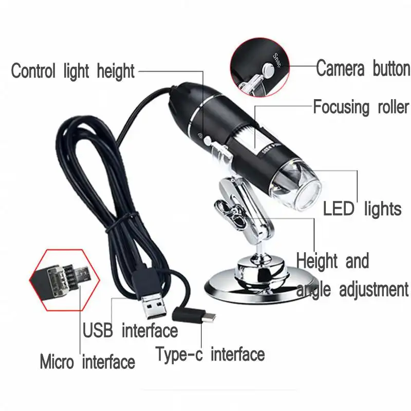 USB Digital Microscope Mini BGA Camera SMD 8 LED 1000x Mobile Electronic Microscope 3 in 1 MAC Android Type-c For Soldering