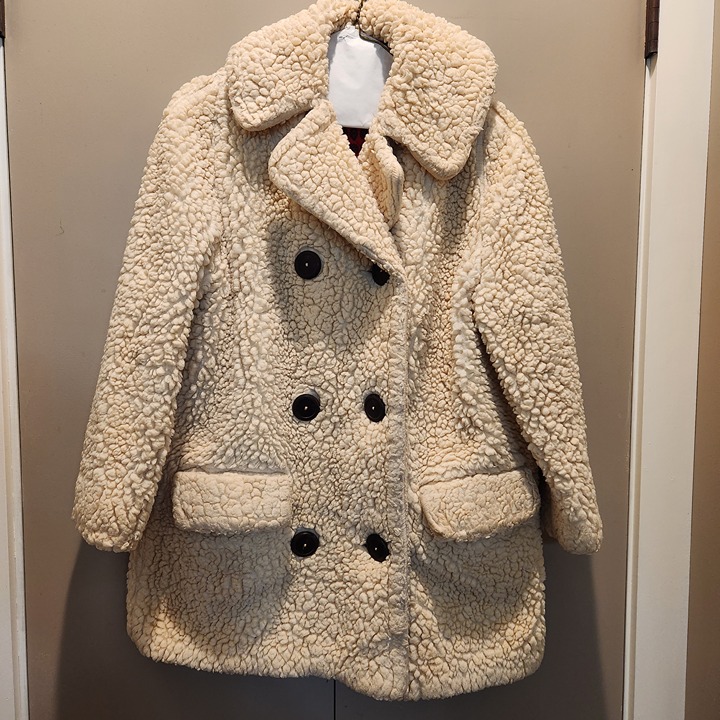 Vintage 1970's I.Magnin's Teddy Bear coat purchased at the downtown Seattle I.Magnin department store. Great wood buttons, two front pockets, and bright red quilted lining. No label with size or materials. We believe that it's a size small, measures 15" across top of shoulders at top, 20" at middle of back, and 22" at bottom. 28" long. Some flattening of faux wool at seams on one side of coat (see last picture), other side is 2nd from last picture. Also some flattening on shoulder seams. Warm, fluffy vintage coat from an awesome department store that is no more.