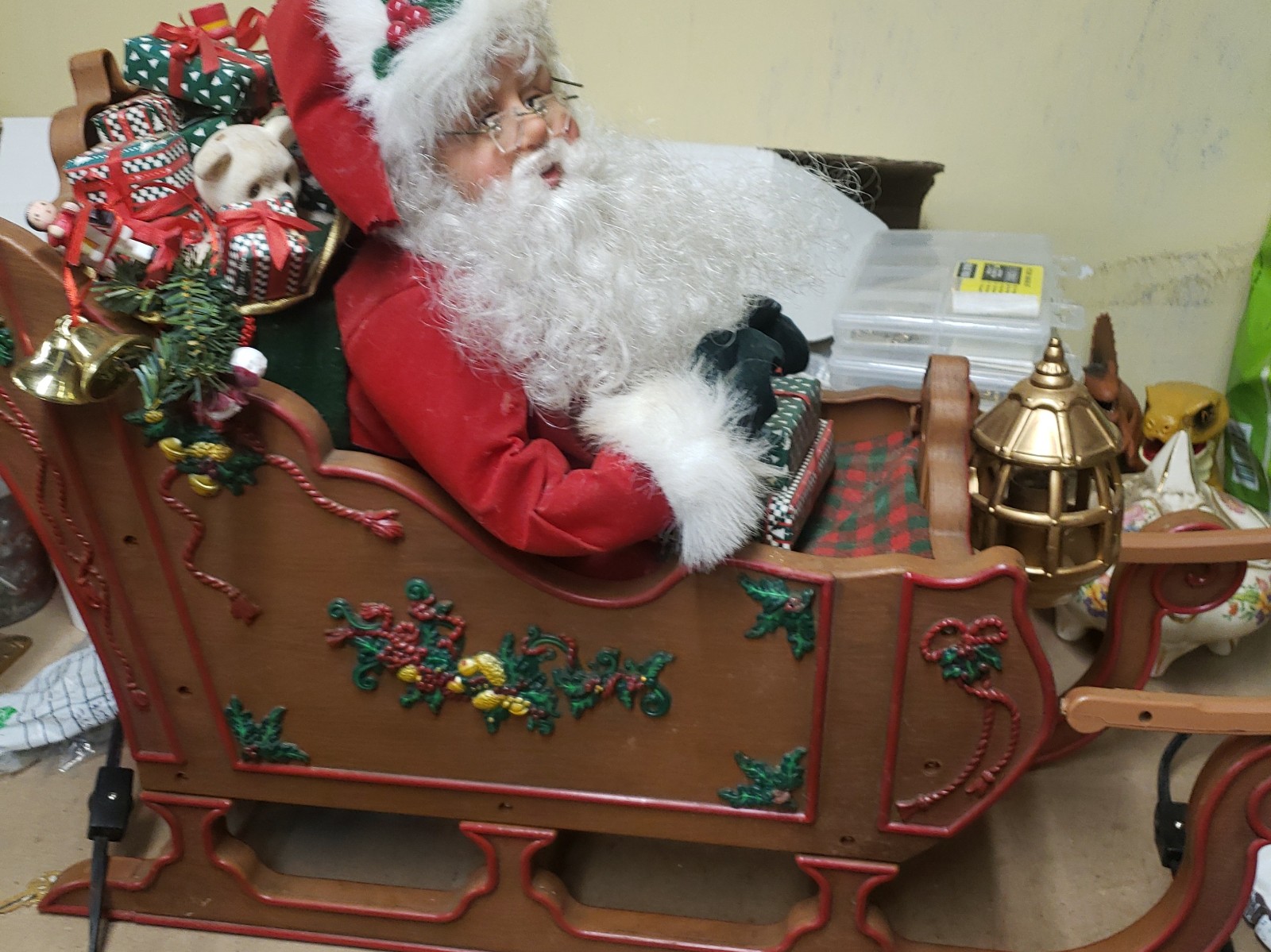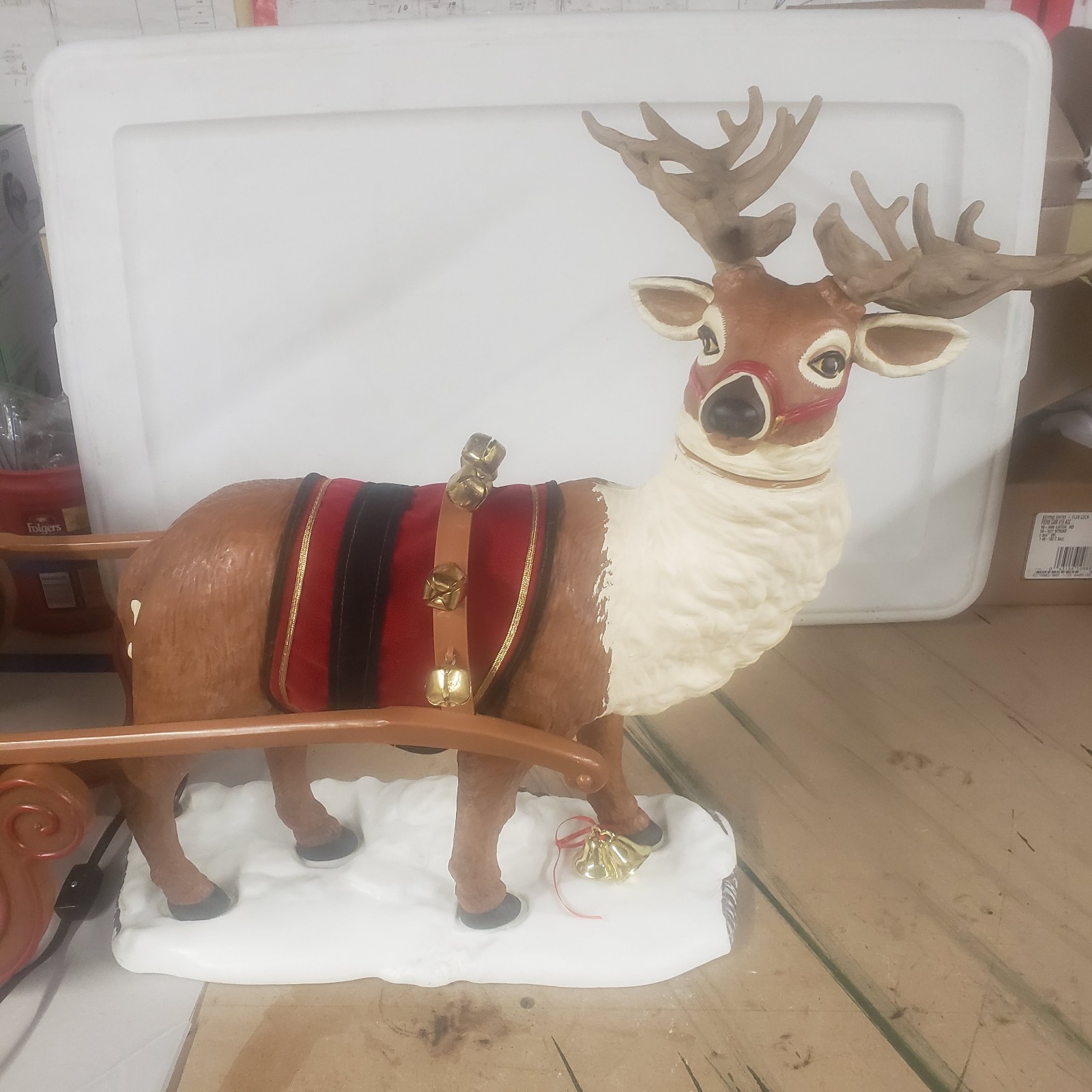 Missing Is The Red Harness That Santa Holds,That Goes Around The Reindeers Neck,Have The Bells,Also Looks Like One Of The Antlers Was Reglued On, See Pics