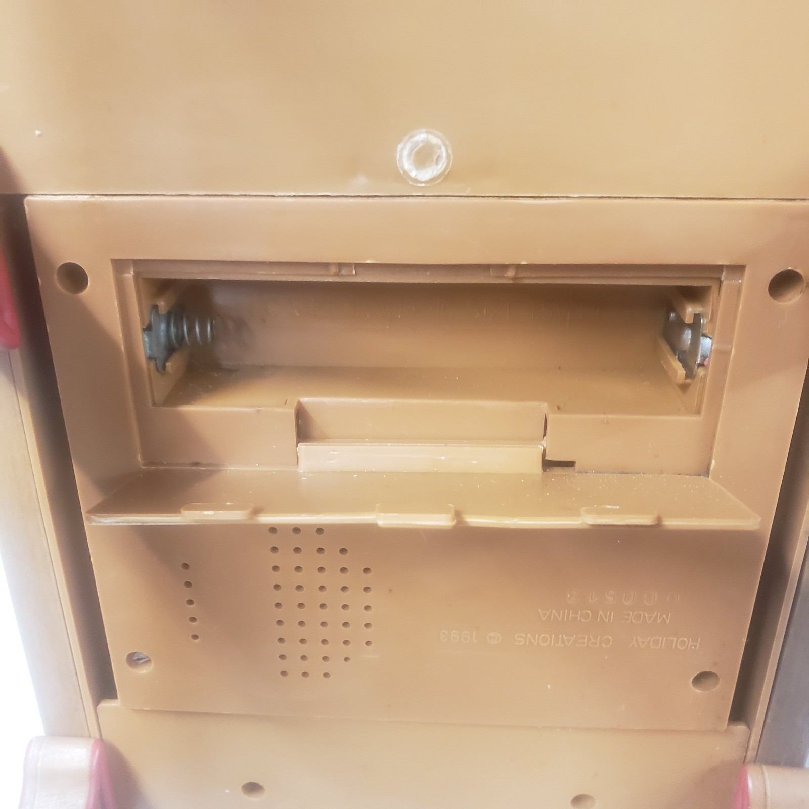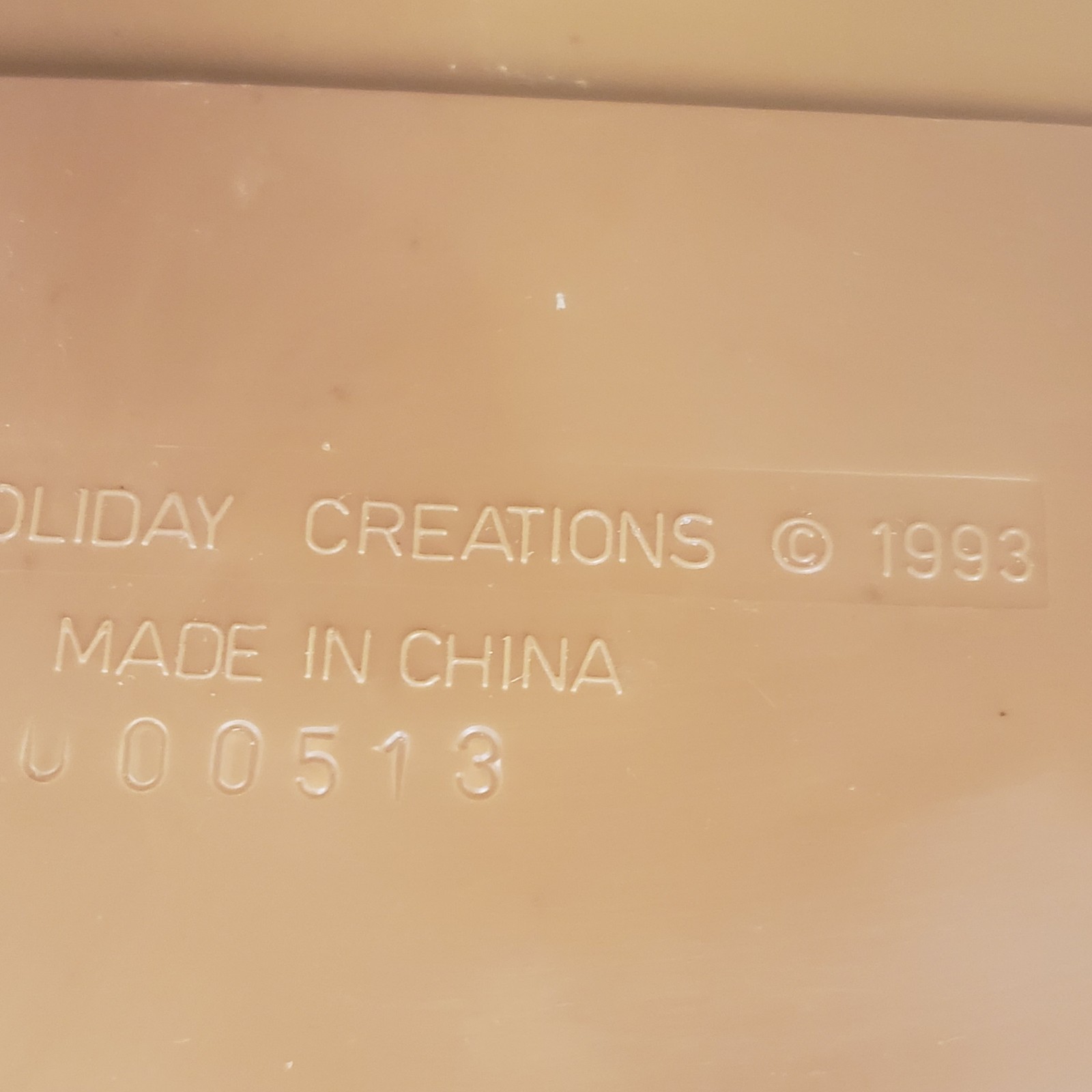 The reindeer’s head also moves back and forth. He measures 18” T x 16” L x 6” W. He wears a removable harness with bells on. There are tabs on the harness that “clip” into holes on the sleigh. They Are broken.Someone Used Screws,