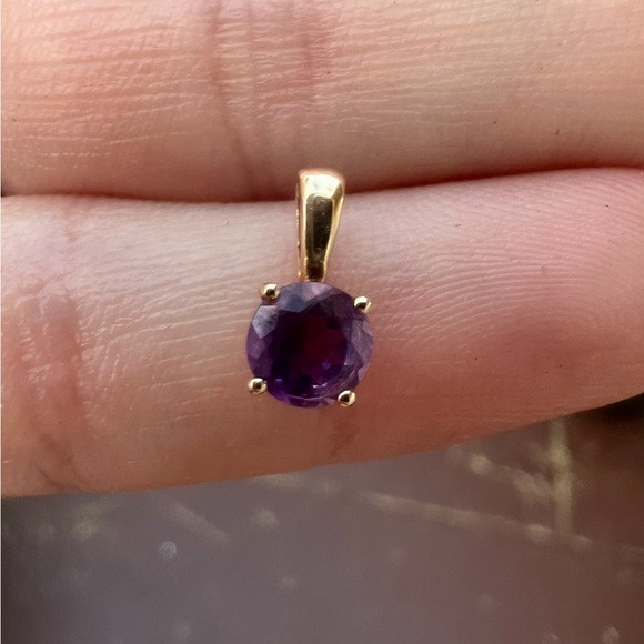 Crafted in solid 14k yellow gold with a genuine gorgeous clean amethyst . Pendant only. No chain