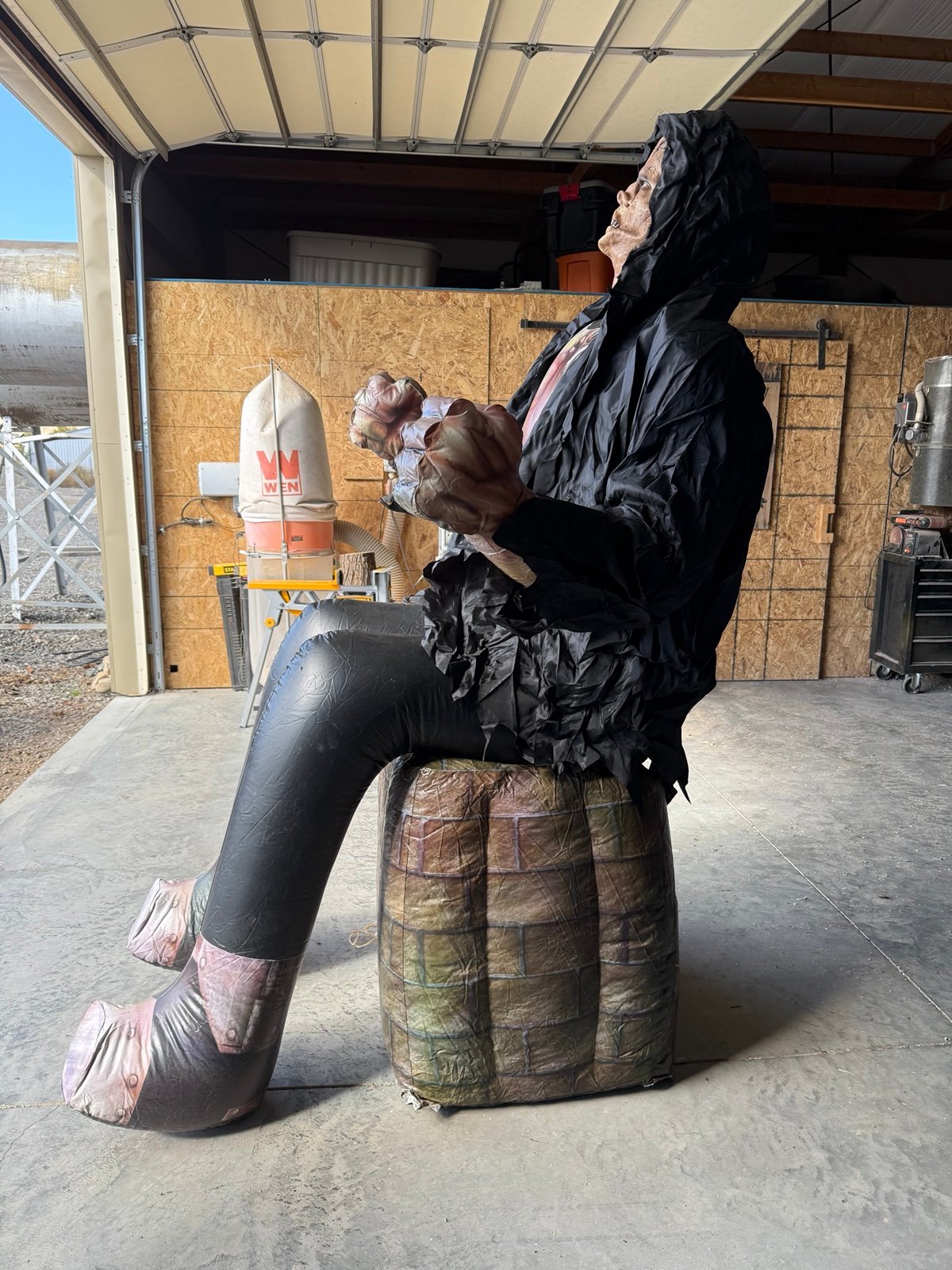 VTG Rare Van Helsing 2004 Inflatable 7’ Monsters Frankenstein Halloween Tested. Original box is showing lots of wear. Come with all original stakes, inflator, spotlight, cape and mask. ****Battery pack for spotlight does work as shown BUT one spring is falling off. Mask was duct taped to the inflatable and stapled to the duct tape as pictured. There is some residue from the duct tape. Inflator works great and no leaks. See pictures.